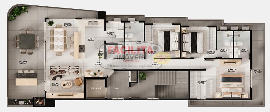 3 dormitórios (3 suítes)